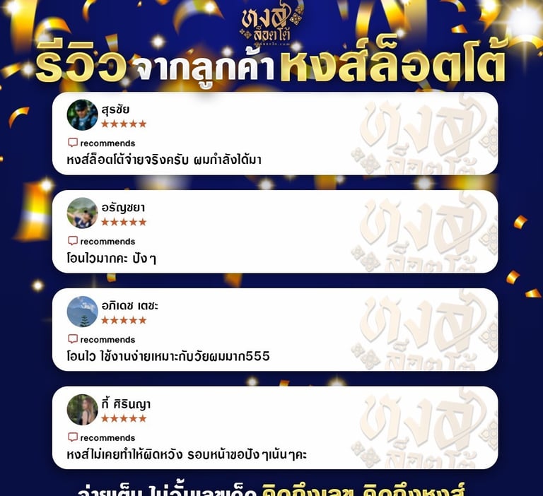 หวยไทย ลาว ฮานอย ยี่กี จ่ายจริง บนมือถือ เว็บแทงหวยลาว Hong Lotto ไม่มีการโกง ไม่มีอั้นเลขดัง หรือยกเลิกการจ่ายรางวัล มีอัตราการจ่ายเงินรางวัลที่สูงกว่าการแทงกับเจ้ามือแบบดั้งเดิม มีระบบทันสมัย ใช้งานง่าย สมัครแทงหวย และระบบฝาก-ถอนเงินแบบอัตโนมัติ รวดเร็ว ไม่ต้องรอนาน